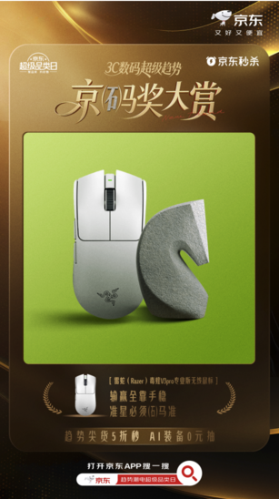 为让更多消耗者感受3C数码趋势尖货的魔力,京东同步带来诸多福利。即日起,通达京东APP搜索“趋势潮电超等品类日”,即可直达活动专区,享受“趋势尖货5折秒杀”和“AI装备0元抽”的专属福利,以更优的价钱拿下包括雷蛇毒蝰V3pro专科版在内的最新趋势3C数码装备,畅享前沿科技带来的千里浸式文娱体验。