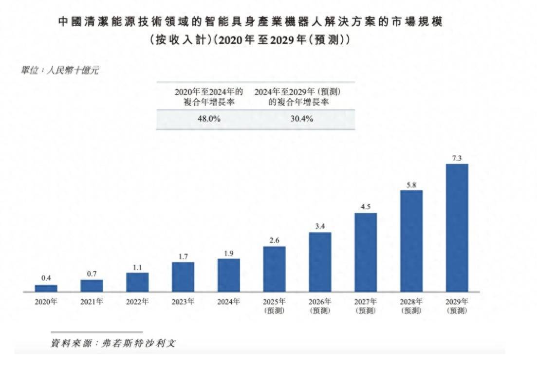 招股书自大,昔时五年,中国具身AI机器东谈主是天下市集的中枢增长引擎,市集范围从2020年的125亿元增长至2024年的287亿元,复合年增长率达到23.1%。预测到2029年,具身AI机器东谈主的市集范围将达到1101亿元,2024年至2029年的复合年增长率将进一步进步至30.9%。
