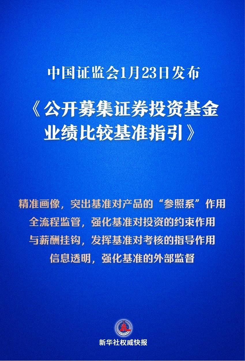 1月23日,中国证监会发布《公开召募证券投资基金功绩比拟基准指导》。中国基金业协会同步发布《公开召募证券投资基金功绩比拟基准操作详情》。