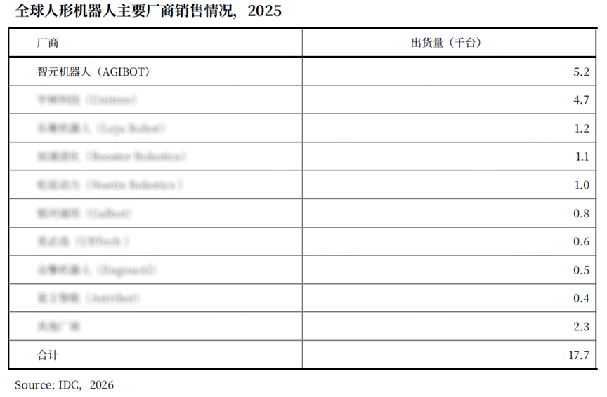 限制化托付实力突显笔据IDC数据,2025年环球东谈主形机器东谈主出货量约1.8万台,同比增长约508%,中国厂商占主导,智元以5200台的出货量稳居环球榜首,市集份额权臣最初。这一数据记号着智元不仅完成了从本事研发到居品量产的关节越过,更在限制化托付这一硬性见解上体现了上风,成就了在环球市集的素质者地位。