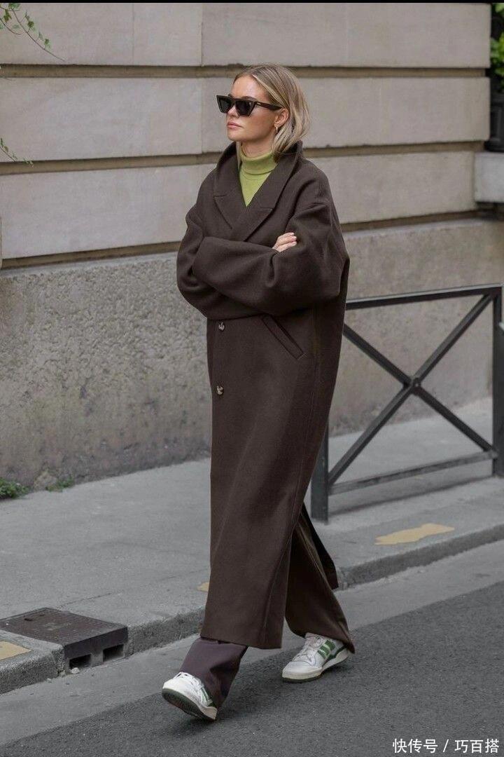 这亦然选款时需要防卫的另一个点,高领名见识棕色大衣必须宽松有型,如若旧例直筒羁系在脖颈上,恶果是不尽东说念主意的。