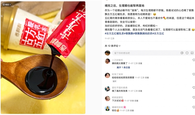 据了解,该居品上市试销以来收到市集积极反应,尤其深受女性浮滥者嗜好。记者酬酢平台上看到,不仙女性浮滥者对这款居品给出了“好喝”“得当姨妈期”的评价。有浮滥者在经期饮用后暗意:“暖乎乎的下肚,喝完扫数这个词东谈主齐舒展了。”