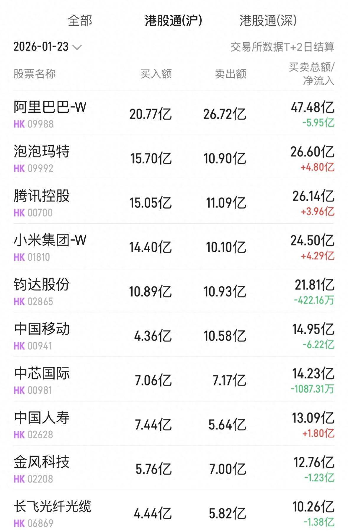 泡泡玛特(09992)获净买入7.47亿港元。音问面上,1月22日,泡泡玛特发布2026年情东谈主节摈弃款盲盒“星星东谈主怦然星动”系列,该毛绒挂件是星星东谈主首个情东谈主节系列盲盒居品,照旧发售连忙售罄。此外,泡泡玛特近期PUCKY敲敲系列盲盒出圈、以及新年马力全开系列毛绒也受到热捧。值得一提的是,公司近日讨好进行回购,1月19日和1月21日共斥资超3亿港元进行回购,彰显了公司关于中长久发展的信心。